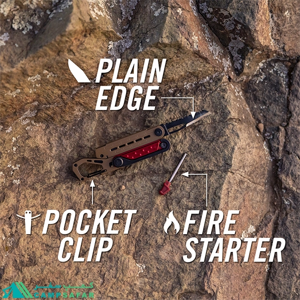 یکی از مهمترین ویژگیهای Stakeout Spark وجود آتشزن واقعی است که همراه با لبه ارهای مخصوص برای ایجاد جرقه، توانایی روشنکردن آتش در شرایط سخت، باد، رطوبت و دمای پایین را فراهم میکند. این بخش دقیقاً همان چیزی است که این ابزار را از بسیاری از مولتیتولهای معمولی متمایز میکند و آن را تبدیل به گزینهای ایدهآل برای کمپینگ و بقا میسازد.