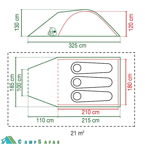 - خاصیت ضد باد :مقاومت بسیار بالا یه دلیل حالت آیرودینامیکی چادر