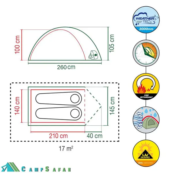 - خاصیت ضد باد :مقاومت بسیار بالا یه دلیل حالت آیرودینامیکی چادر