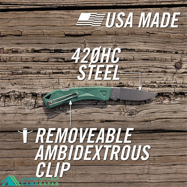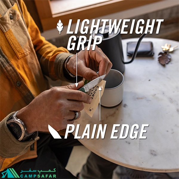 - تیغه Drop Point با لبه ساده ساخته شده از فولاد ضدزنگ 420HC با تمرکز بر برش کنترلشده و دوام مناسب در استفاده روزمره