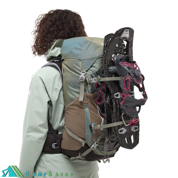 همچنین بندهای شانهای کوله پشتی نیز به صورت ارگونومیک و با توجه به فرم و آناتومی بدن خانم ها است طراحی شده است، بندهای کنترل بار، تسمهی قفسهسینه قابل تنظیم، و بندهای تعادل روی کمربند باعث میشود وزن بهصورت یکنواخت توزیع شده و فشار کمتری به شانهها وارد شود. یک جیب زیپی روی کمربند امکان دسترسی سریع به اقلام کوچکتر را فراهم میکند، در حالی که دستگیرههای دستی برای استراحت بازوها در هنگام صعودهای طولانی نیز در نظر گرفته شده است.