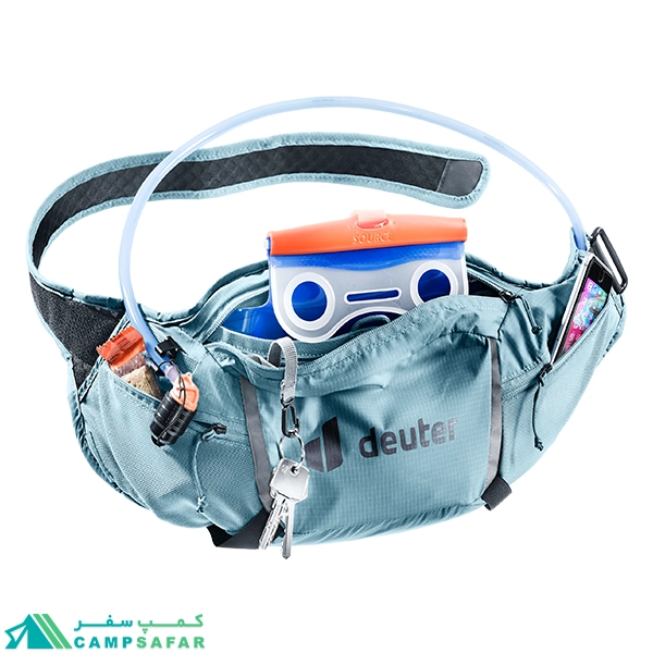 کیف کمری DEUTER مدل SHORTTRAIL III از کیسه آب مخصوص تا حجم ۱.۵ لیتر (کیسه آب کوهنوردی دیوتر DEUTER مدل STREAMER SQ 1.5L) پشتیبانی میکند که این موضوع آن را برای فعالیتهای طولانیمدت بسیار کاربردی میکند. این قابلیت به کاربر اجازه میدهد بدون نیاز به کولهپشتی، نیاز آبی خود را در مسیرهای طولانی تأمین کند. طراحی این بخش بهگونهای انجام شده که کیسه آب بهصورت پایدار در جای خود قرار میگیرد و باعث ایجاد عدم تعادل یا فشار موضعی نمیشود.